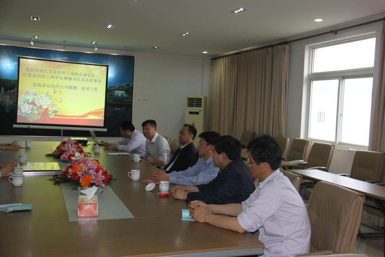 2016年5月27日上午11時,省紡織工業(yè)協(xié)會謝明會長、省紡織工程學(xué)會傅瑞華秘書長、江南大學(xué)服裝學(xué)院謝春萍教授親臨江蘇泰達(dá)紡織有限公司授給“科技服務(wù)站”牌匾,授牌儀式由省紡織工程學(xué)會傅秘書長主持,泰州市科協(xié)竺大明主席、姜堰區(qū)科協(xié)何劍主席、泰達(dá)公司總經(jīng)理彭勃等相關(guān)負(fù)責(zé)人參加授牌儀式。