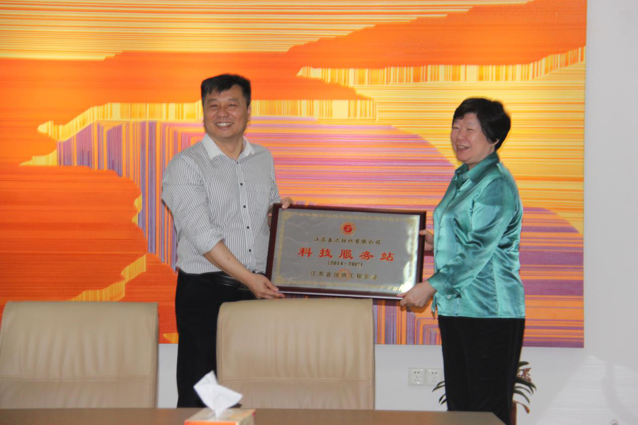 省紡織工程學(xué)會授給江蘇泰達(dá)紡織“科技服務(wù)站”牌匾