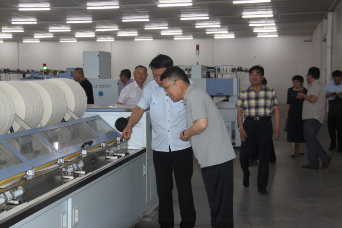 圖三:紀(jì)院長(zhǎng)現(xiàn)場(chǎng)了解棉精梳機(jī)生產(chǎn)性能。
